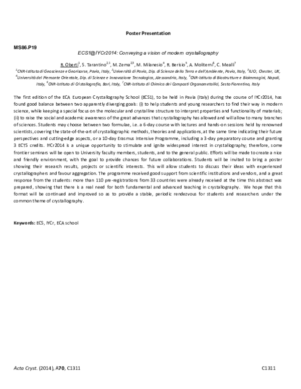 (PDF) ECS1@IYCr2014: Conveying a vision of modern crystallography