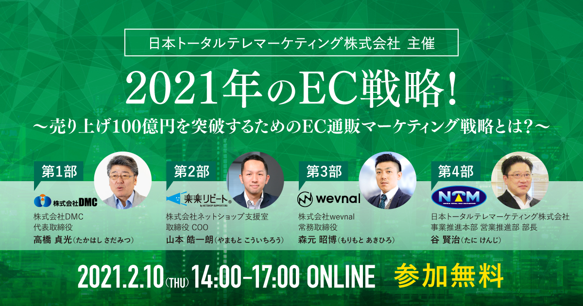 【2/10(水)オンラインセミナー】2021年のEC戦略!~売り上げ100億円を突破するためのEC通販マーケティング戦略とは?~ | NEWSCAST