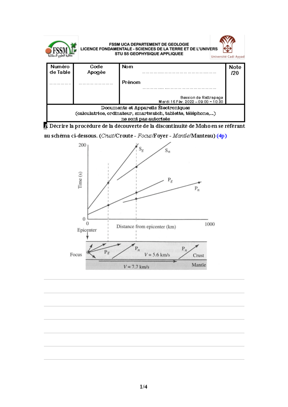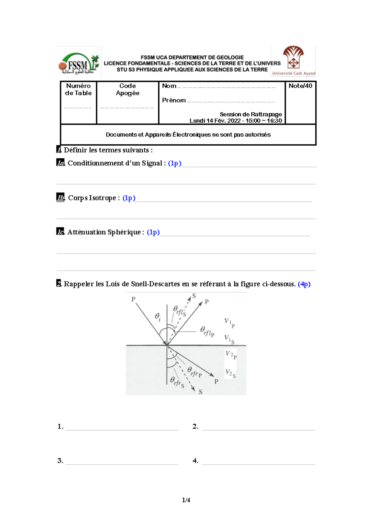 Examen R 21 22 - de Table Numéro ................. Apogée Code