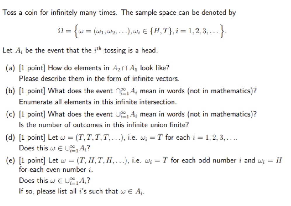 Solved Toss a coin for infinitely many times. The sample | Chegg.com