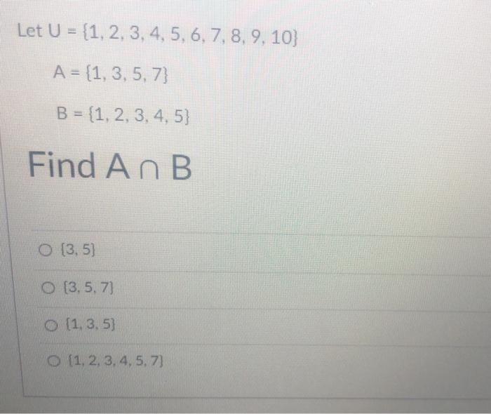 Solved Let U = {1, 2, 3, 4, 5, 6, 7, 8, 9, 10) A = {1,3,5,7) | Chegg.com