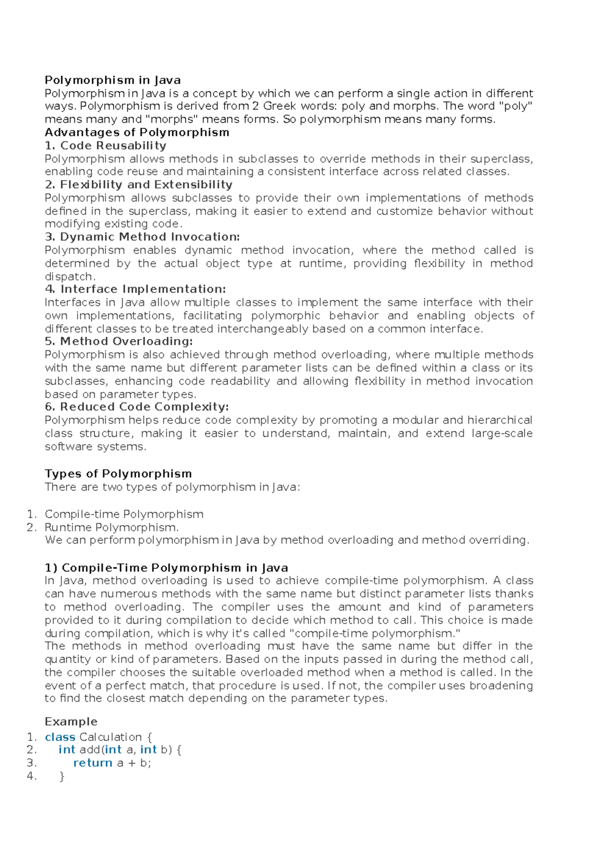 Polymorphism in Java: Concepts, Advantages, and Examples - CS101 - Studocu