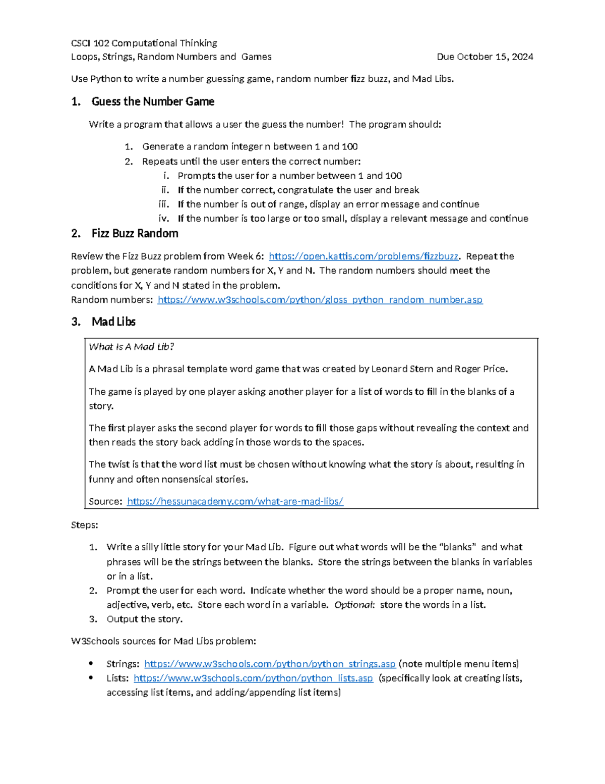 COMP202 Week 6 Lesson: Random Numbers & String Manipulation - Studocu