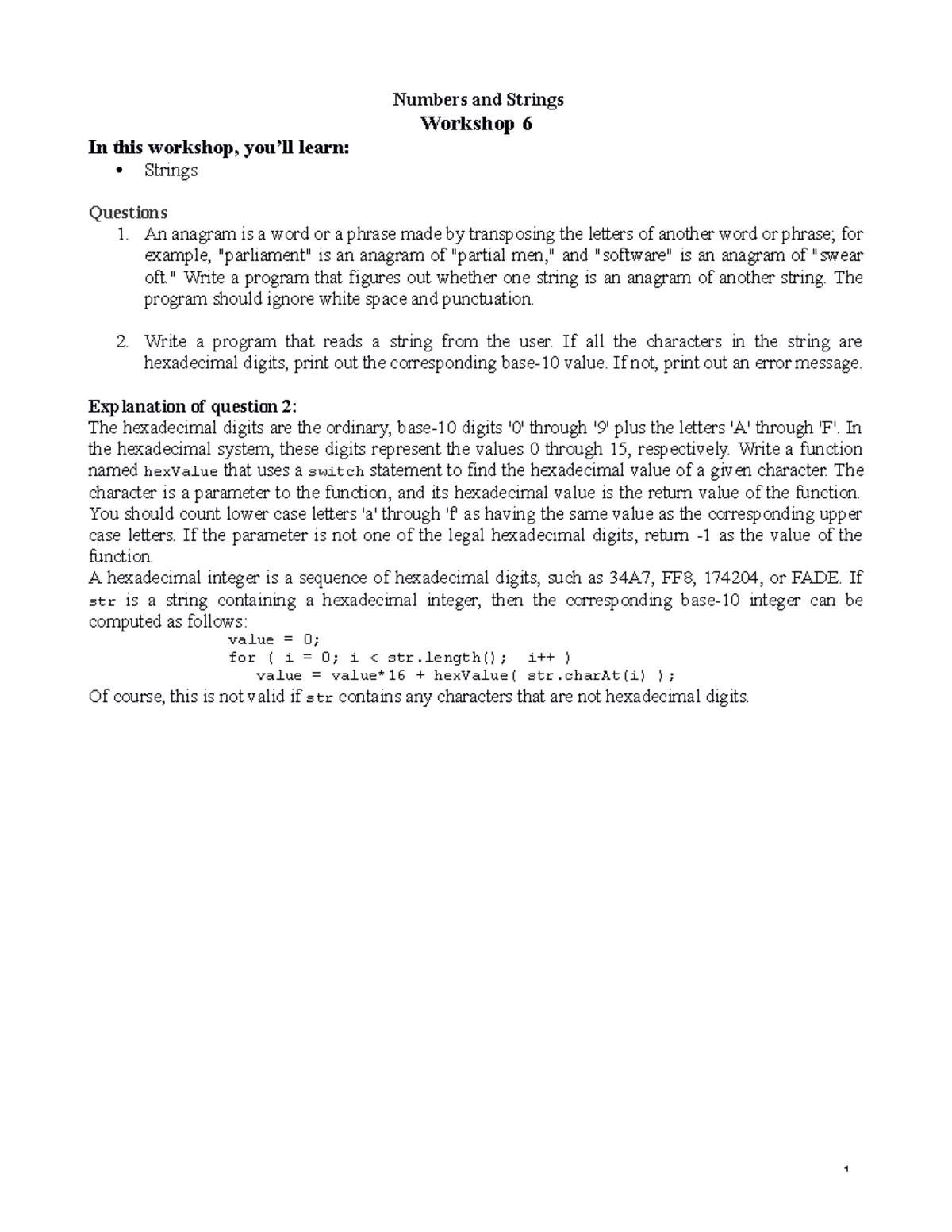 Programming Principles Workshop 5: String Manipulation and Functions ...