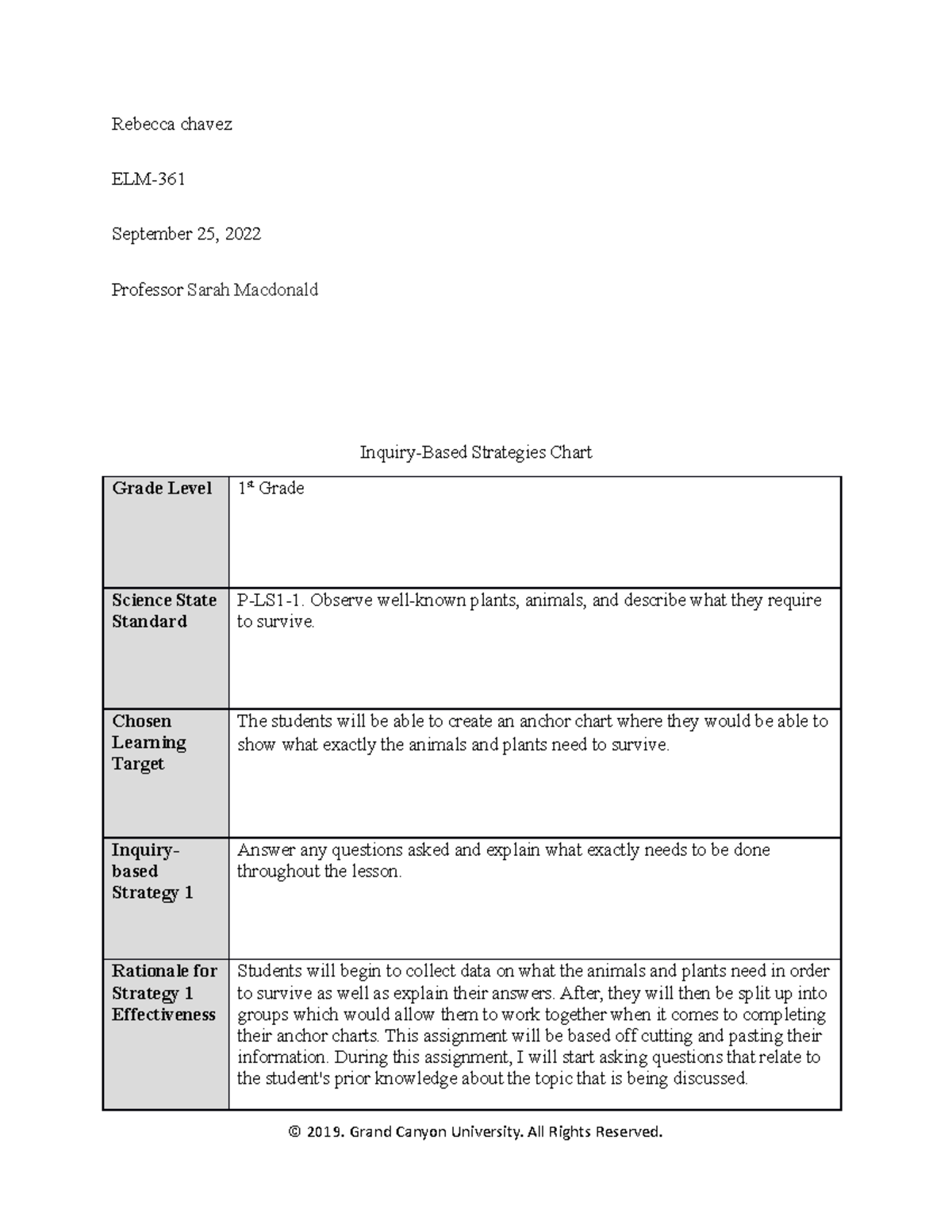 Rebecca - ELM361 -Inquiry Based Strategies Chart-2 - Rebecca chavez ELM ...