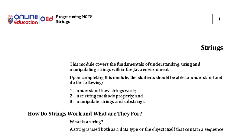 Programming NC IV: Java Strings Fundamentals and Manipulation - Studocu