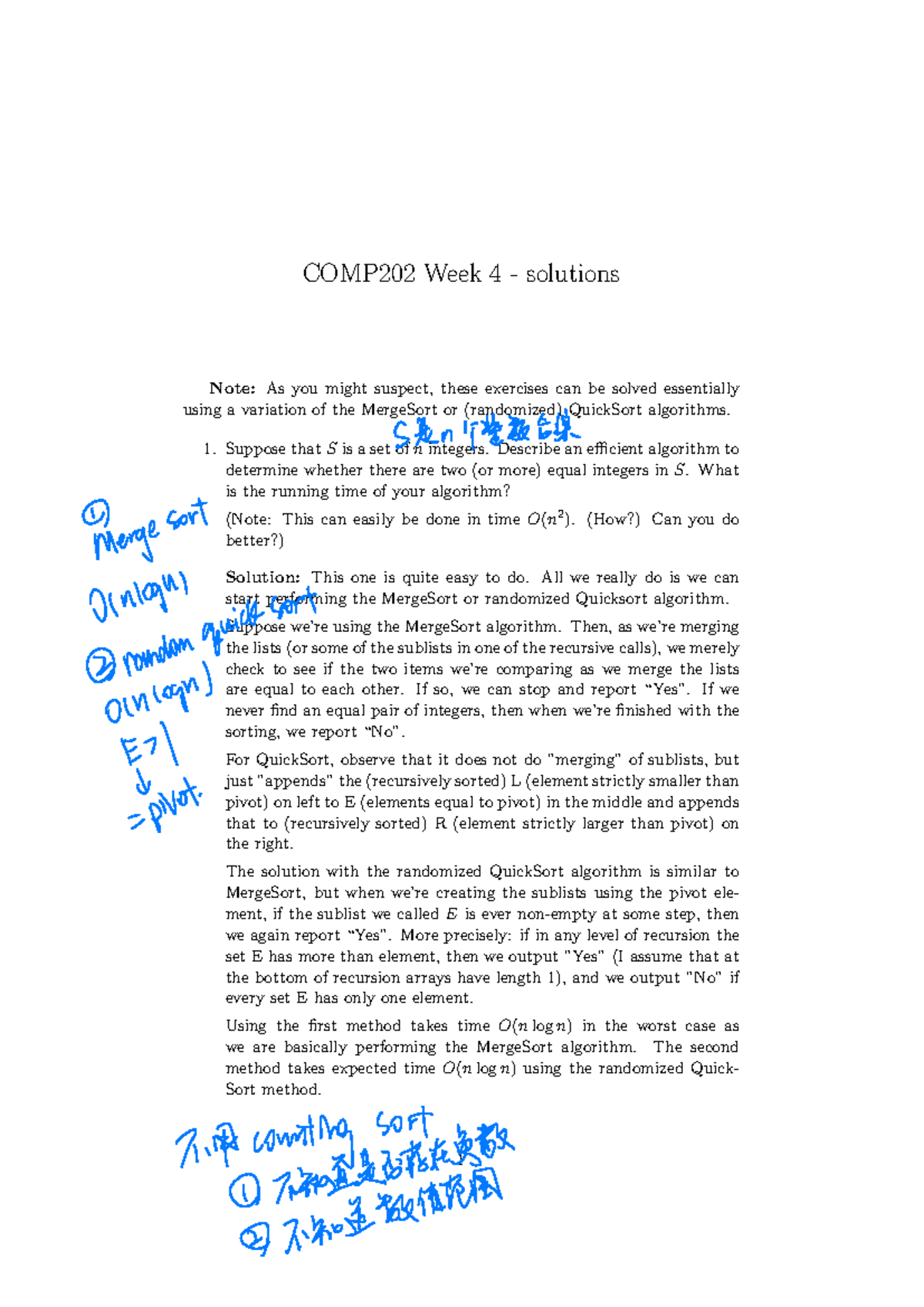 COMP202 Week 4 Solutions: MergeSort & QuickSort Algorithms - Studocu