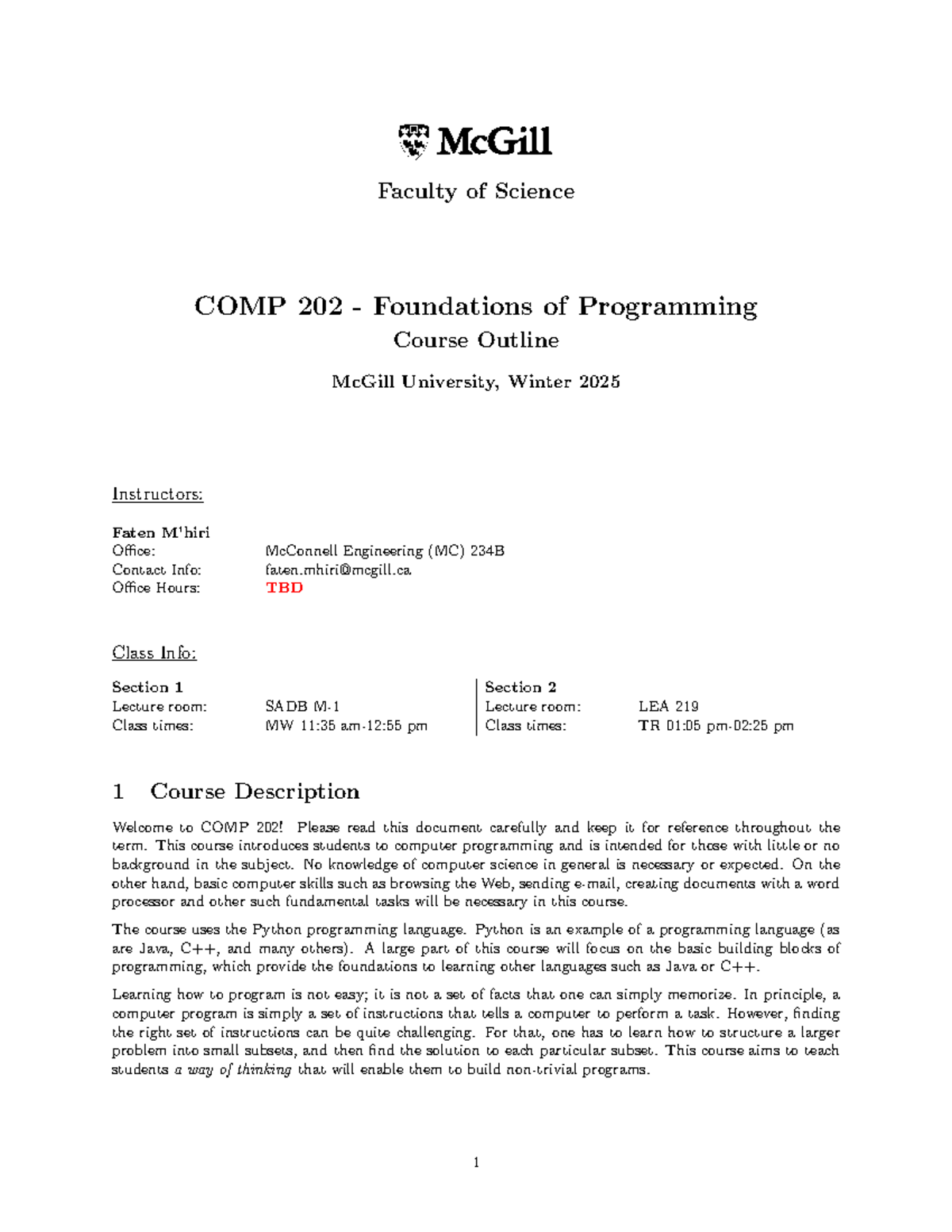 COMP202 Course Outline and Details for Winter 2025 - Studocu