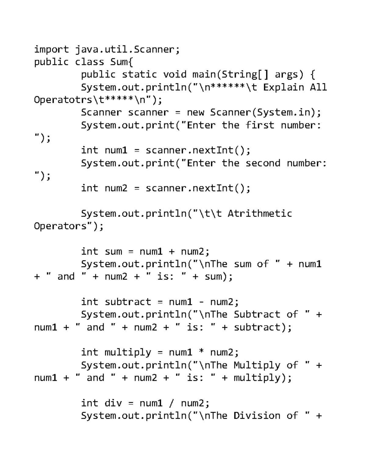 Operators Programs - Readddd - import java.util; public class Sum ...