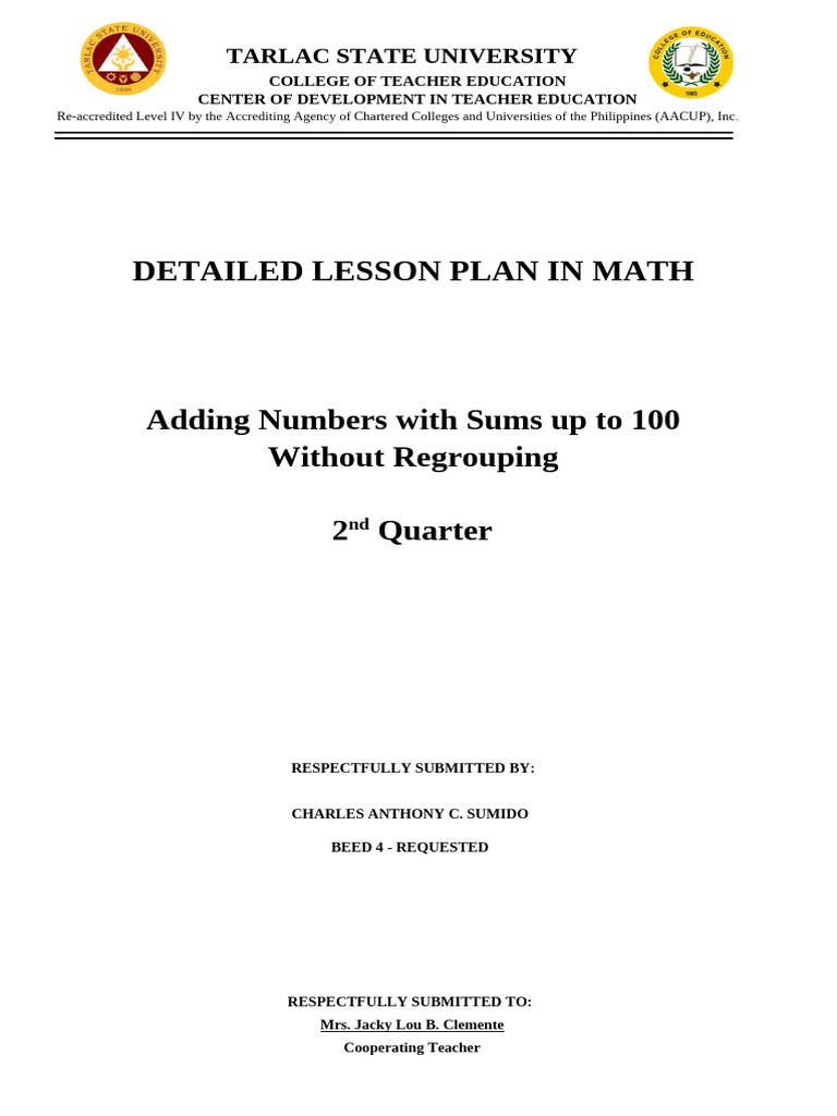 559226621 Grade 3 Lesson Plan: Addition of 3-4 Digit Numbers - Studocu