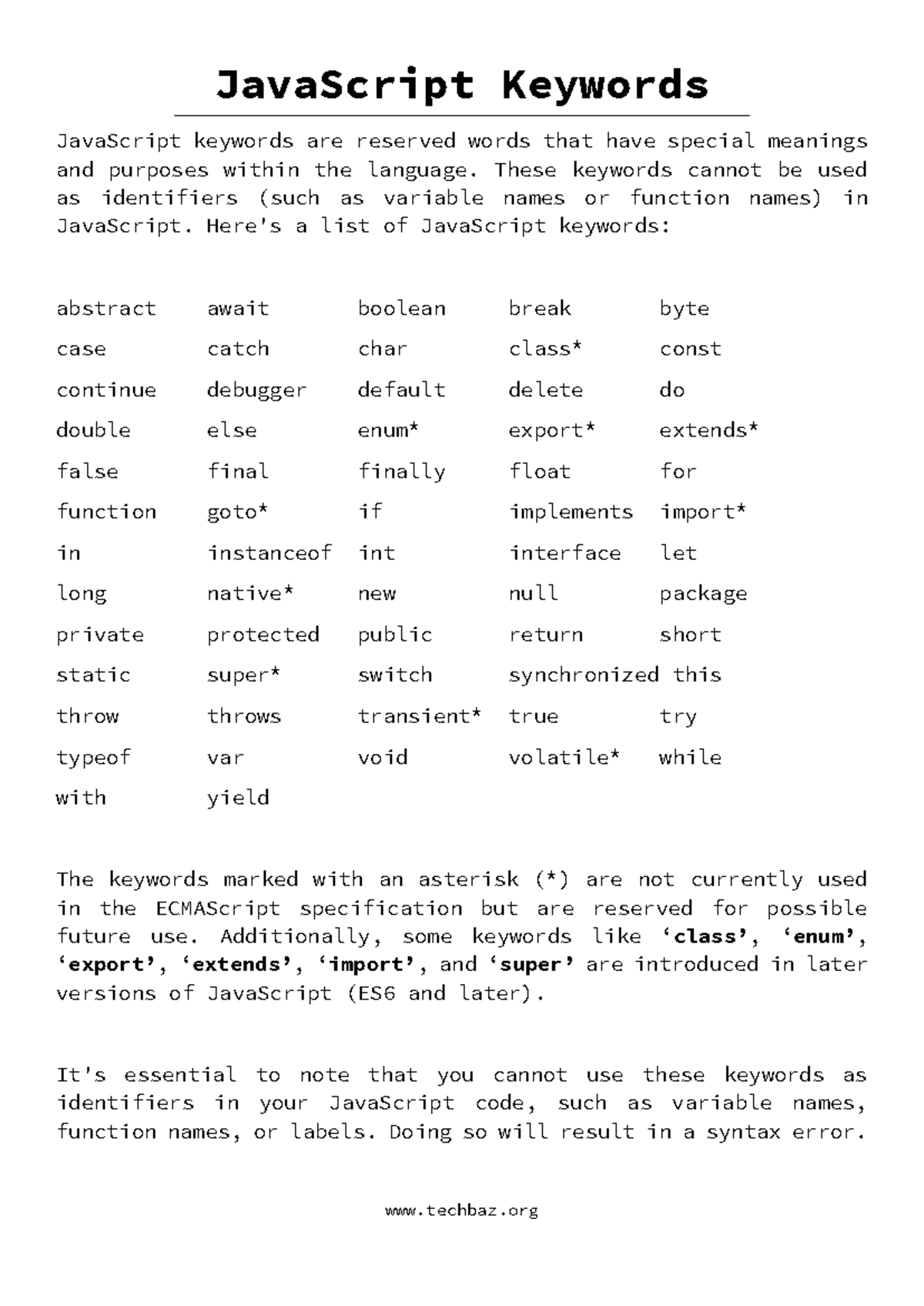 JavaScript Reserved Words: Keywords and Future Reserved Words - CodeLucky