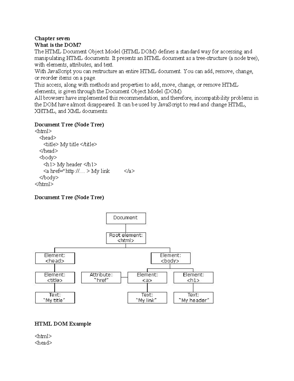 Lecture 7, 8 - notes - Chapter seven What is the DOM? The HTML Document ...