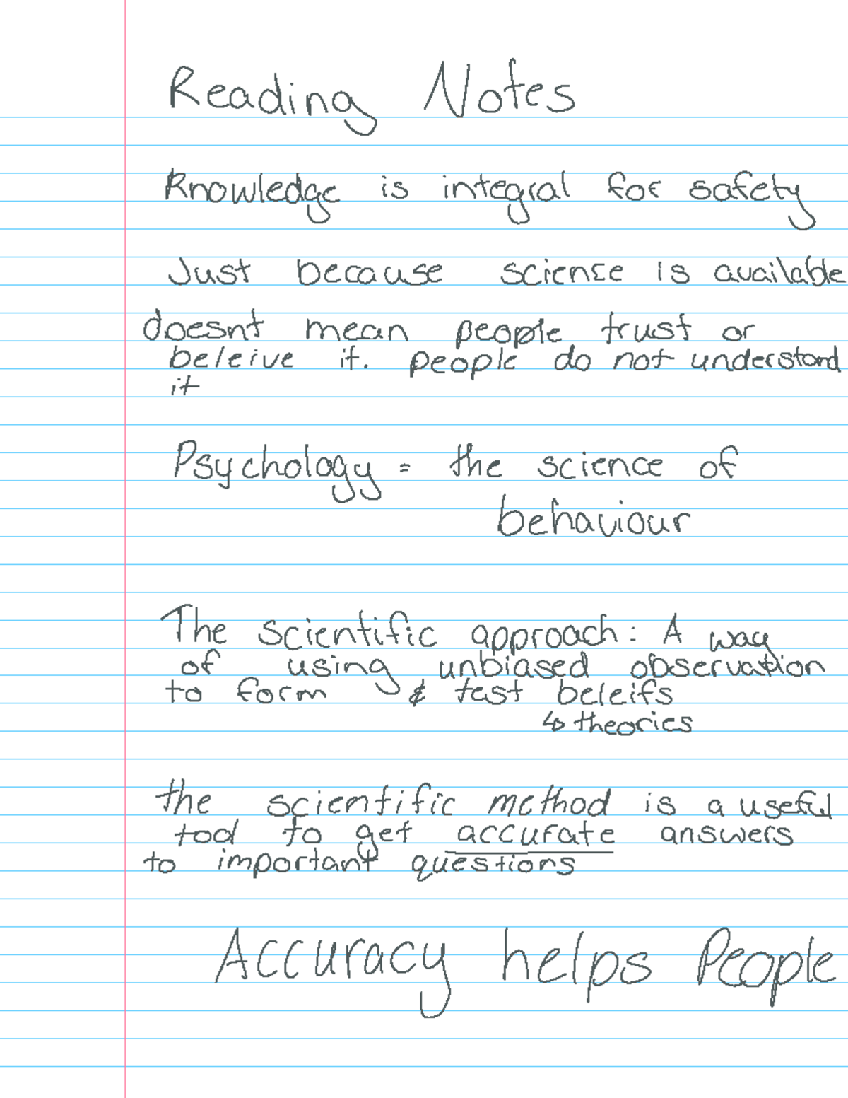 Week 1 Reading Notes - Reading Notes knowledge is integral for safety ...