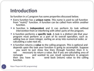 FUNCTION IN C PROGRAMMING UNIT -6 (BCA I SEM) | PDF