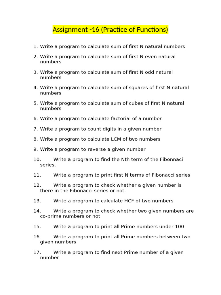 Programming Tasks for Function Practice | PDF