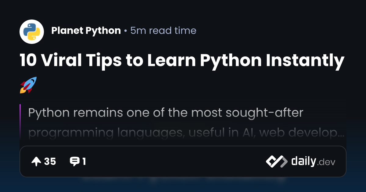 10 Viral Tips to Learn Python Instantly 🚀 | daily.dev
