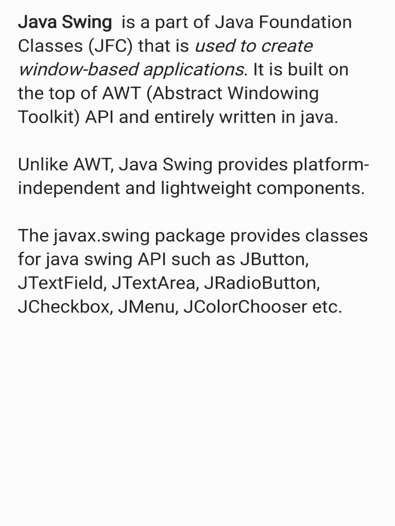 UNIT 2 Swing Notes | PDF | Java (Programming Language) | Java Platform