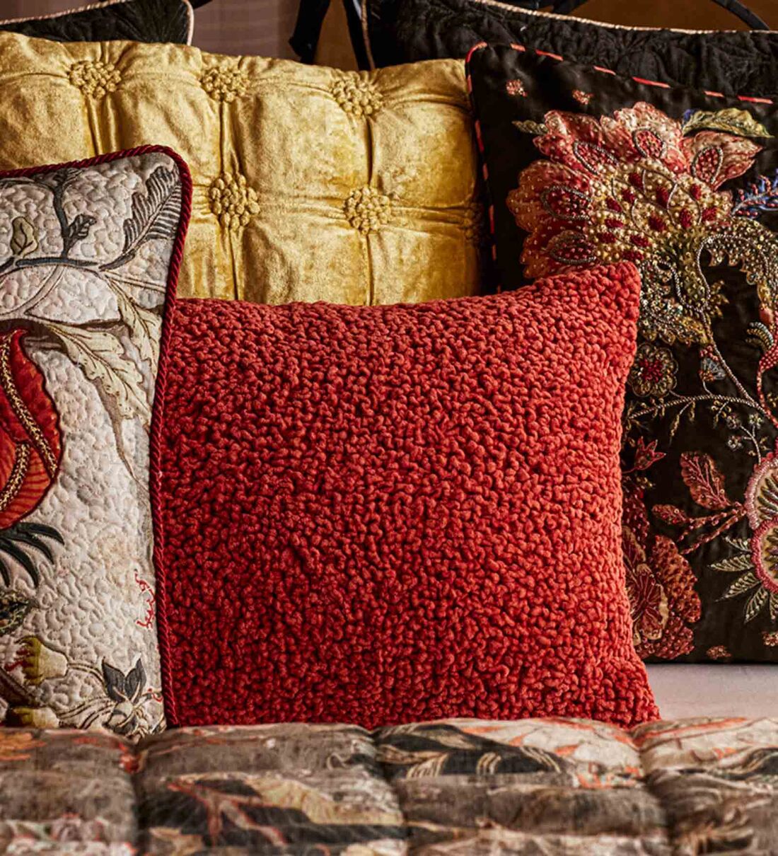 Buy Floret Red Viscose Velvet Cushion Cover with Filler by Ritu Kumar ...