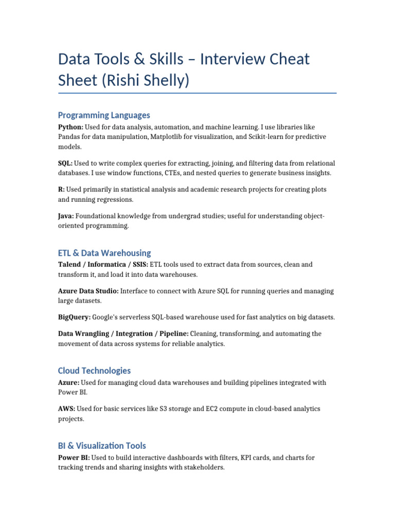 RishiShelly Interview CheatSheet | PDF | Data | Data Warehouse