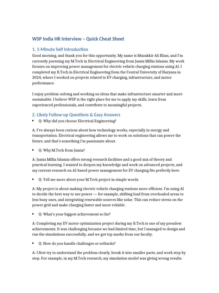 WSP HR Interview CheatSheet | PDF | Simulation | Electric Vehicle