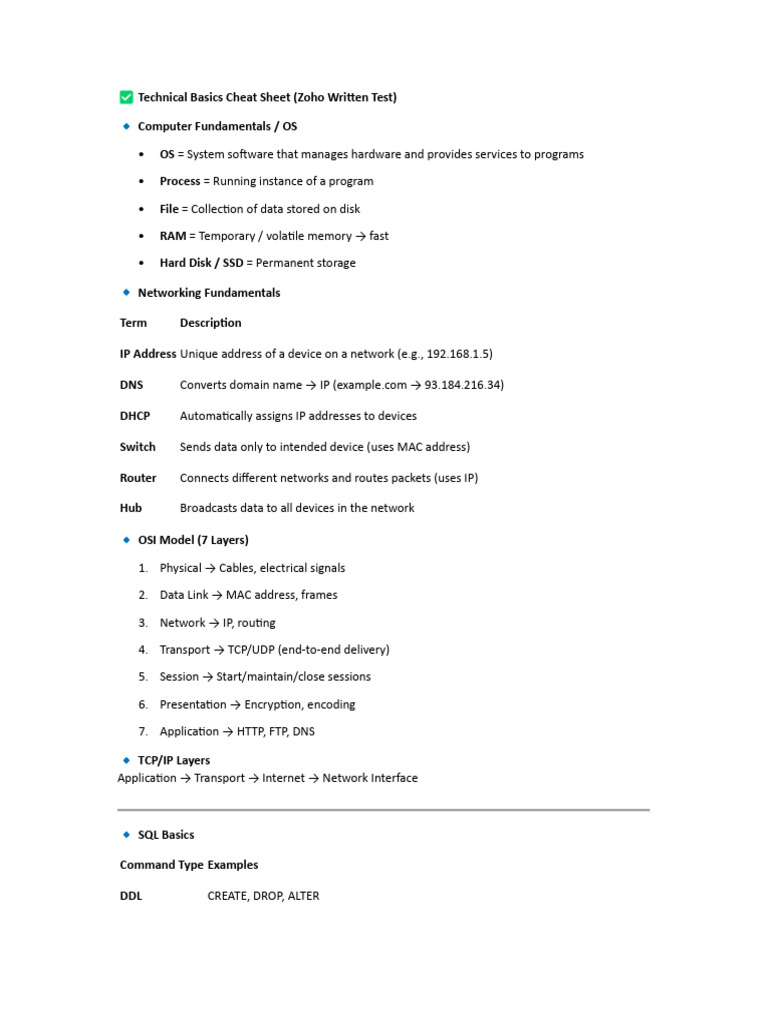 Zoho Interview Cheatsheet Saturday | PDF | Internet Protocol Suite ...