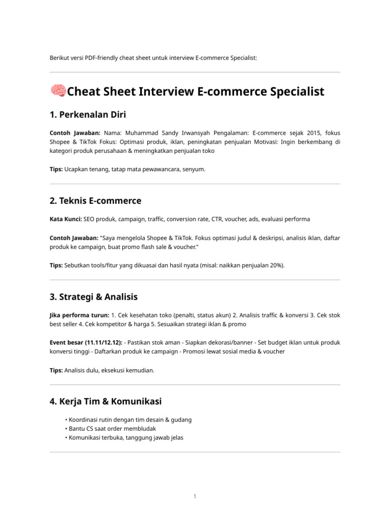 Ecommerce Interview Cheatsheet | PDF