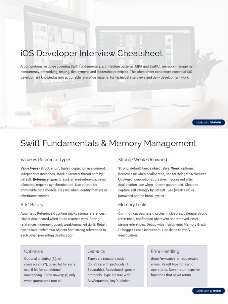 iOS Developer Interview Cheatsheet | PDF | Ios | Systems Engineering