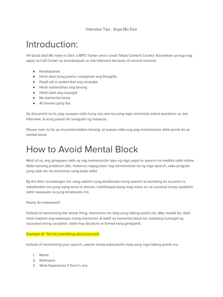 It Job Interview Tips Cheat Sheet PDF | PDF | Job Interview | Human ...