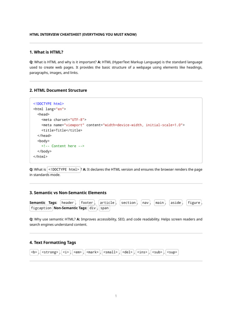HTML Interview Cheatsheet | PDF | Html | Html Element