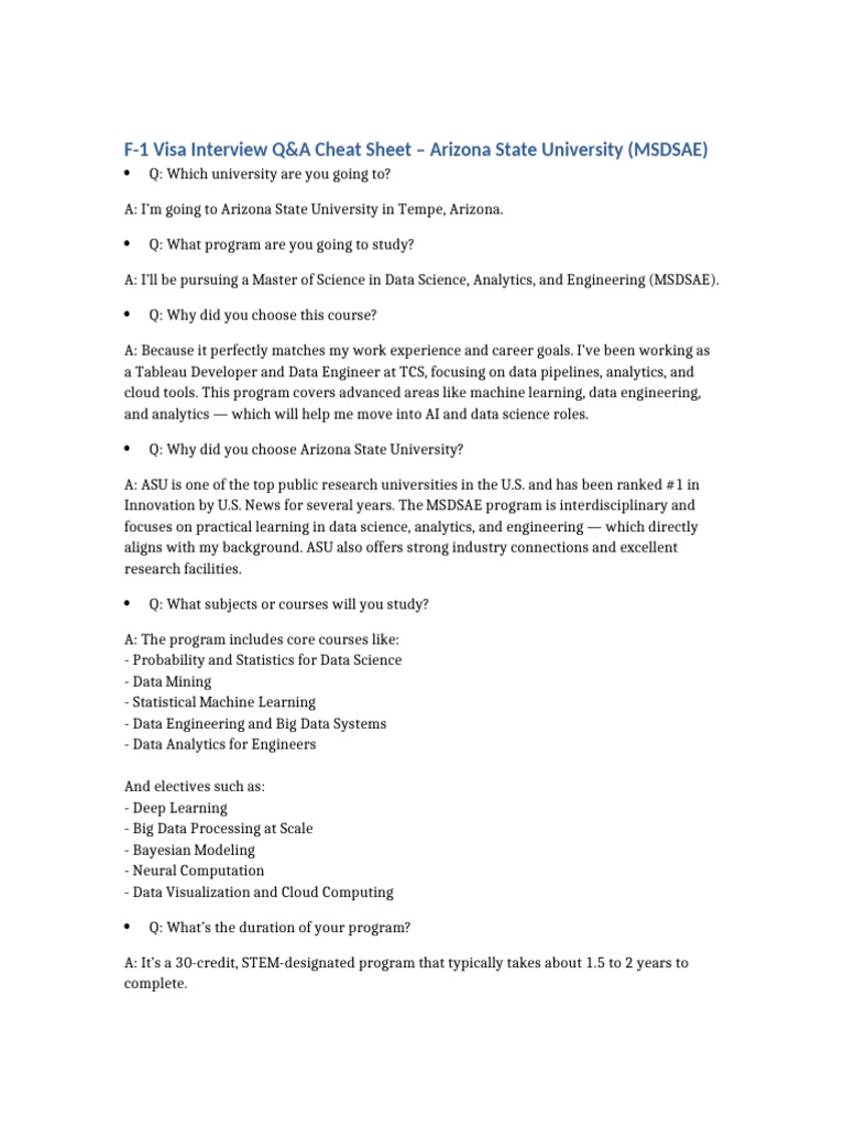 ASU MSDSAE Visa Interview CheatSheet | PDF | Machine Learning | Data ...