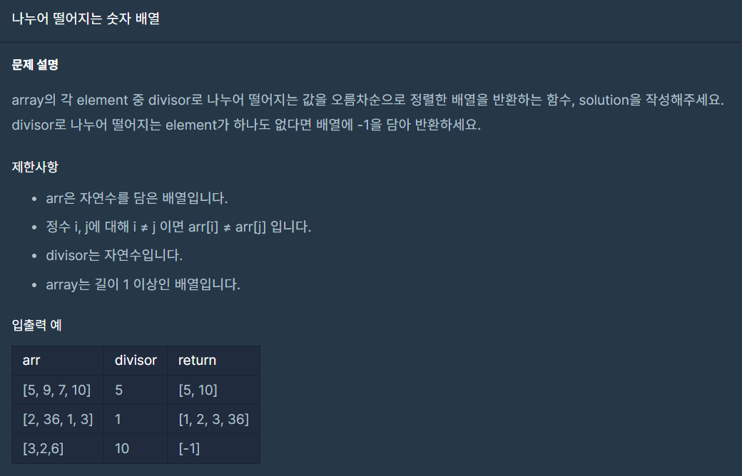 [Python] 프로그래머스 코딩테스트 연습 > 나누어 떨어지는 숫자 배열(논리 연산자, 자료형 별 Bool값)