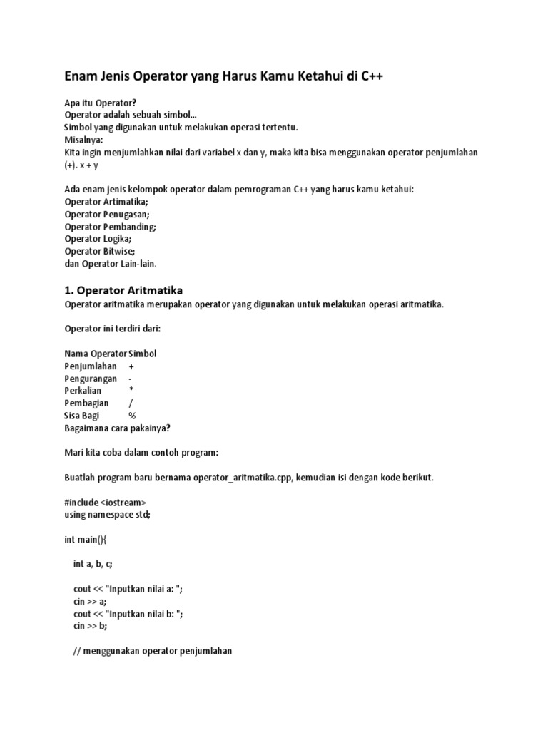 Enam Jenis Operator Yang Harus Kamu Ketahui Di C | PDF | Komputer ...