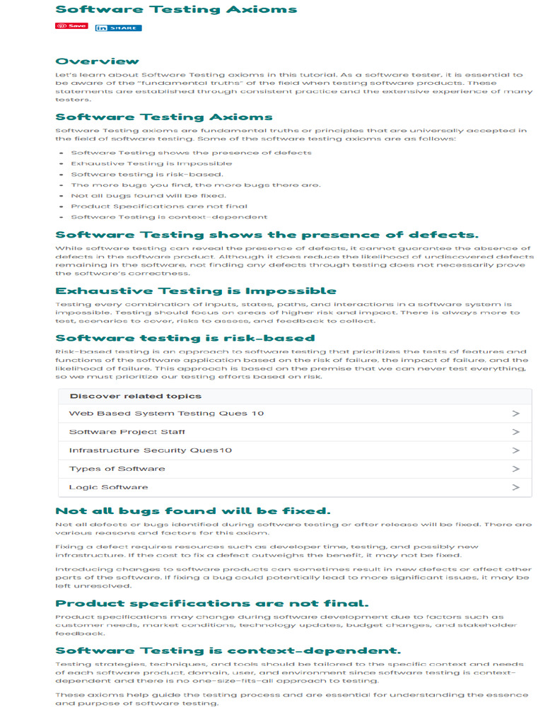 Software Testing Axioms TestingDocs Com | PDF