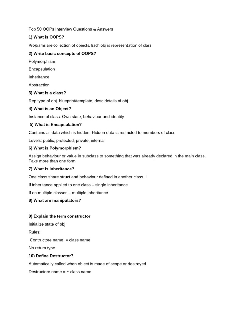 Top 50 OOPs Interview Questions | PDF | Method (Computer Programming ...