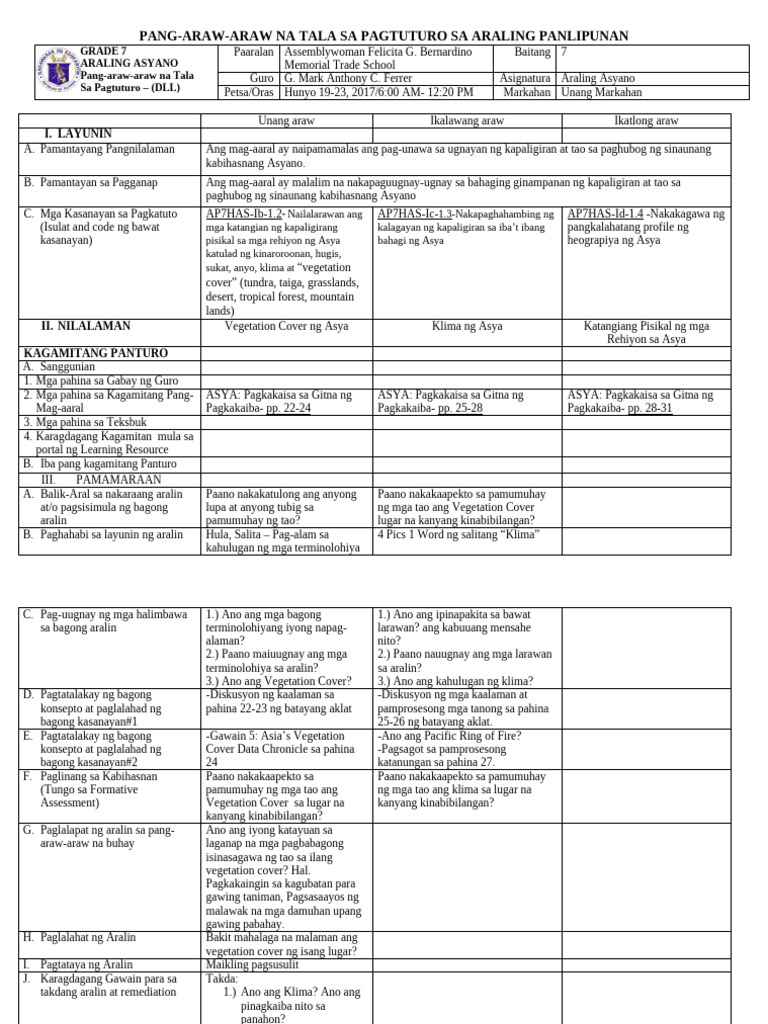 GRADE 7 SCIENCE DAILY LESSON LOG: WEEK 1 OBJECTIVES & ACTIVITIES - Studocu