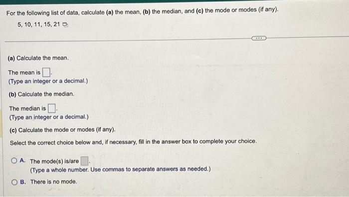 Solved For the following list of data, calculate the mode or | Chegg.com