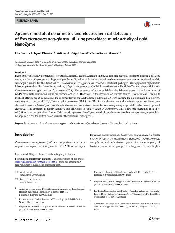 (PDF) Aptamer-mediated colorimetric and electrochemical detection of ...