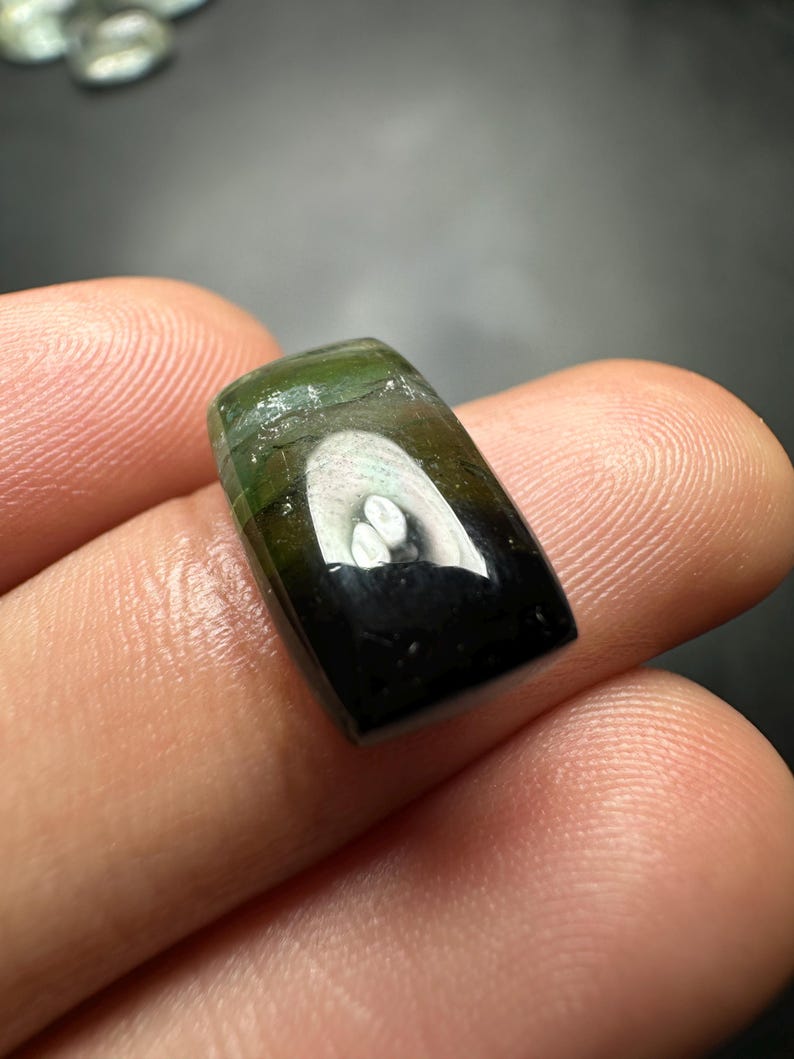 Cabujón de turmalina verde bicolor; turmalina natural (4,55 ct, 14 x 6 ...
