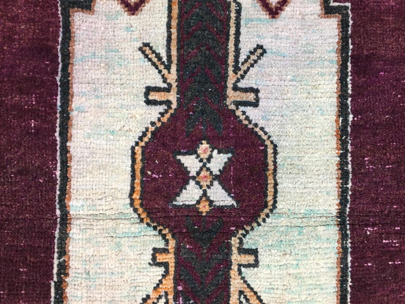 Alfombra pequeña vintage de lana con medallón morado para la entrada, 1 ...