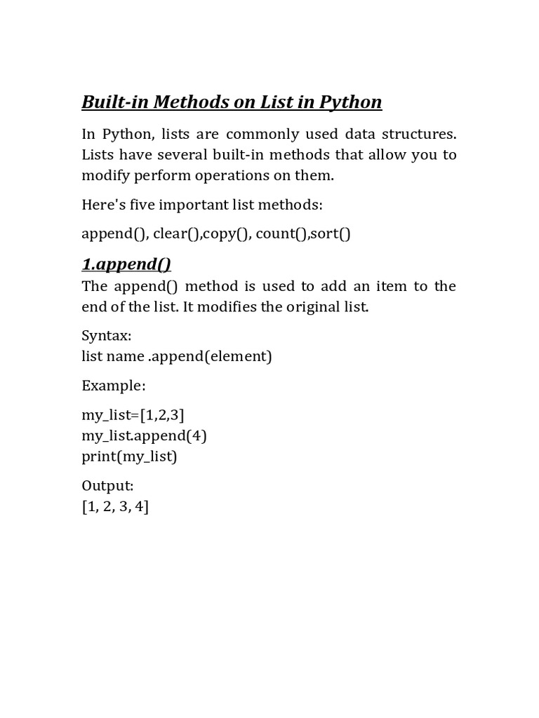 Built - In Methods in Python | PDF | Computer Programming | Algorithms ...