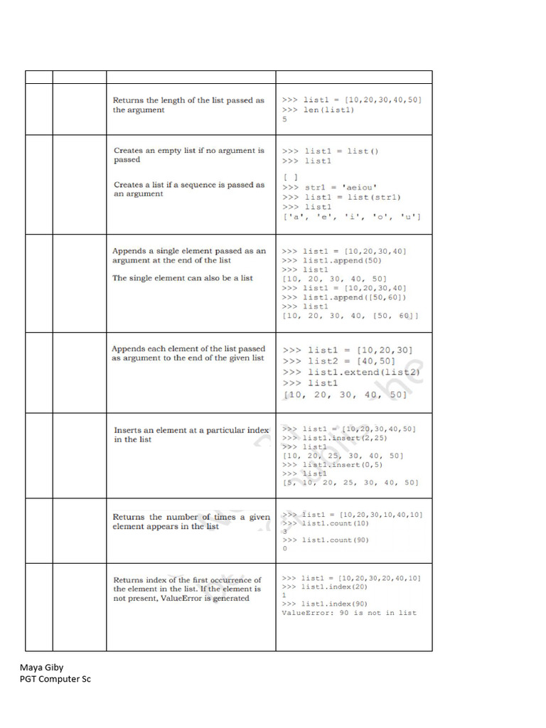 List Methods and Built-in Functions - Lists | Class 11 Computer Science ...