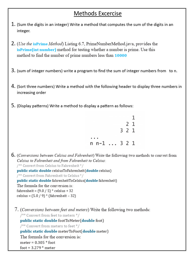 Solved 2 The Methods For each of the following, create a | Chegg.com