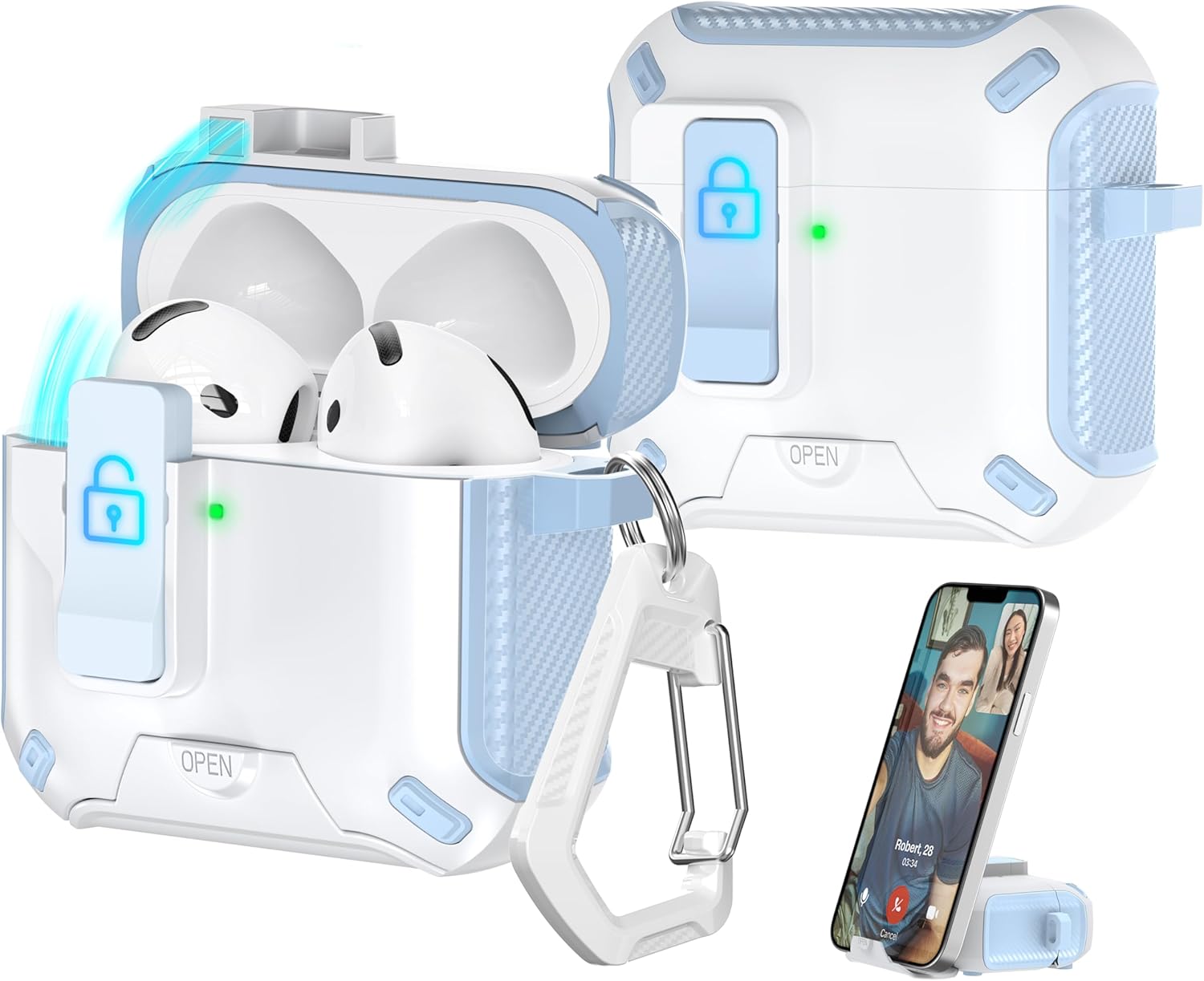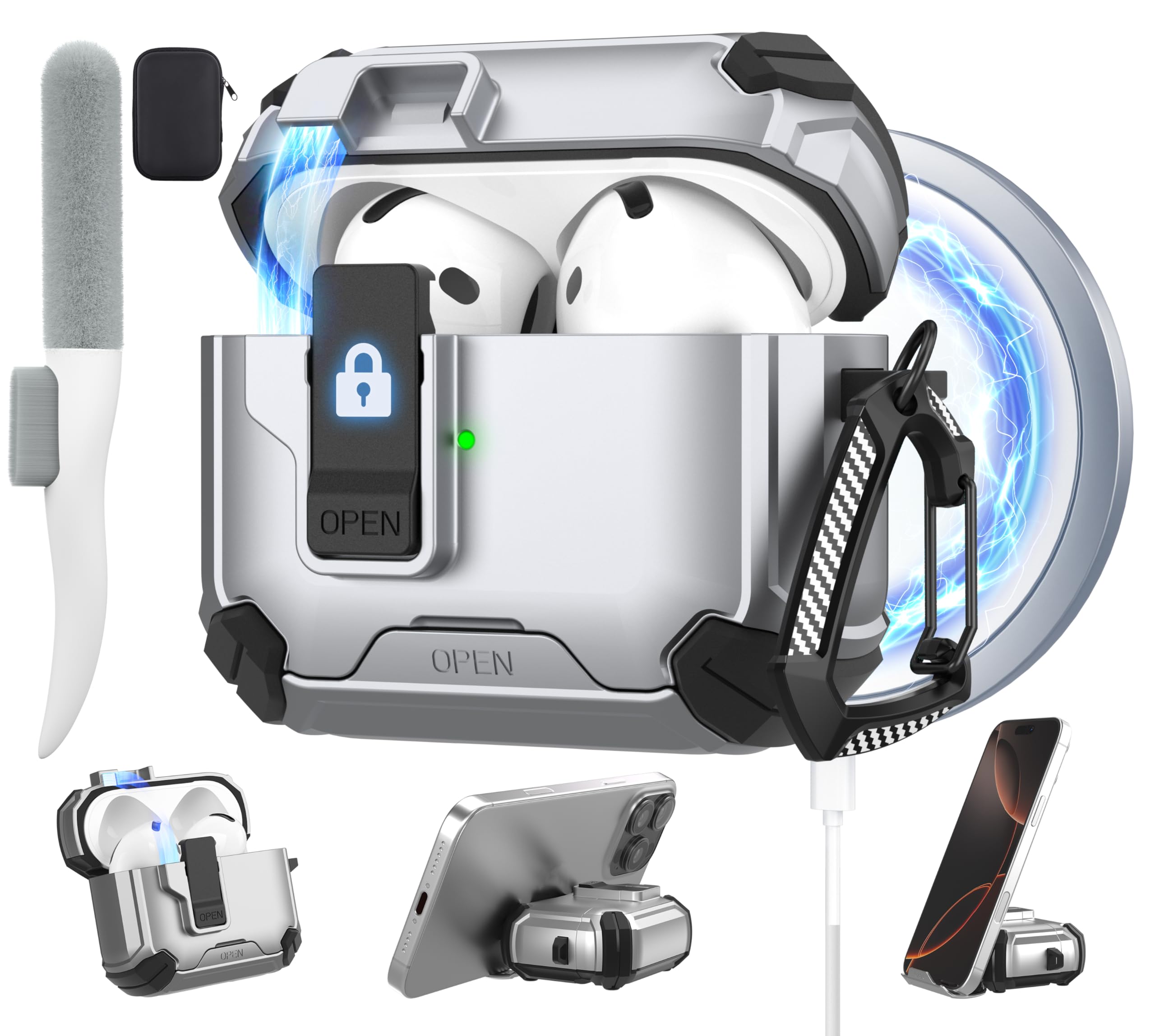 Dteck for AirPods 4th Gen Case with Phone Stand, Auto Open Secure Lock ...