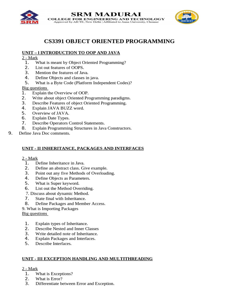Java OOP Concepts and Question Bank | PDF | Inheritance (Object ...