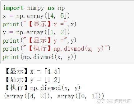 数组x中每个元素除以数组y中对应元素 以元组形式返回对应的商和余数 numpy.divmod(x,y) - 知乎