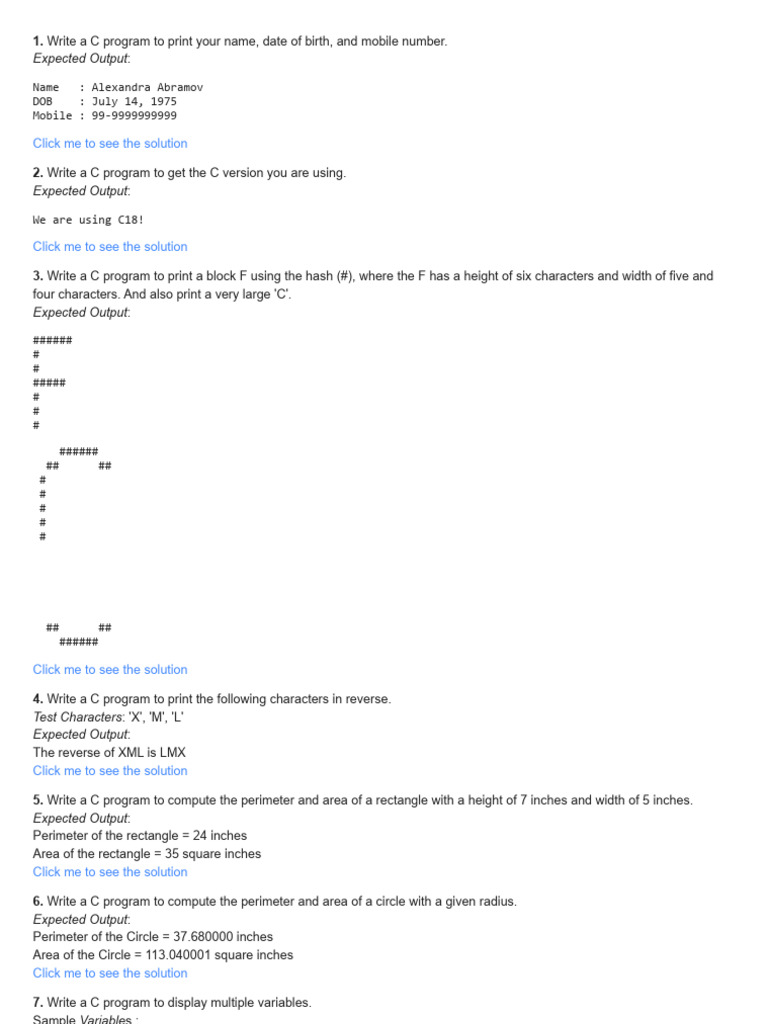 C Programming Basic - Exercises, Practice, Solution - W3resource | PDF ...