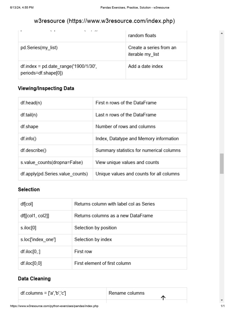 Pandas Exercises, Practice, Solution - W3resource | PDF