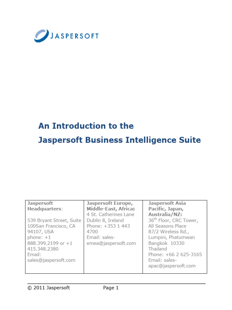 Jaspersoft Intro JBIS Suite WP 1 | PDF | Computing | Information Technology