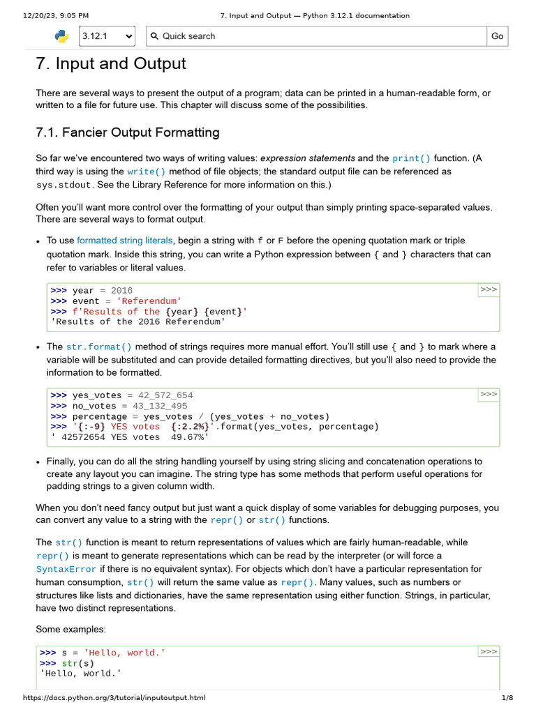 7. Input and Output — Python 3.13.7 documentation