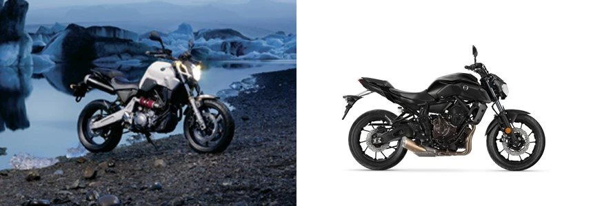 Motorrad Vergleich Yamaha MT-03 2006 vs. Yamaha MT-07 2020